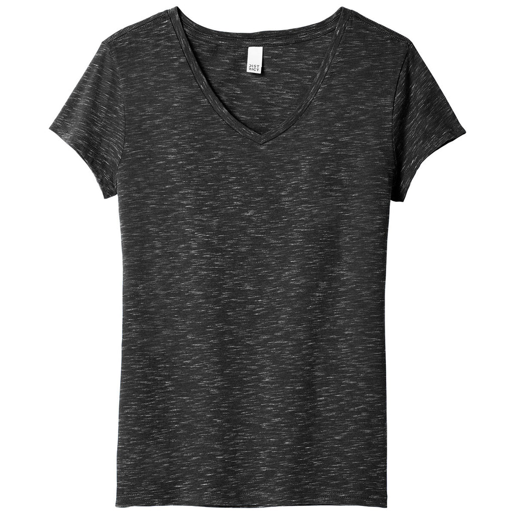 With a relaxed fit that blends in seamlessly at company casual social events, the screen printed District Women's Black Medal V-Neck Tee is an excellent addition to new employee gift bags. Shoulder to shoulder taping produces a structured look that withstands the pounding delivered by active lifestyles. Enjoy the super smooth feel of 90% ring spun cotton, as well as polyester fibers that bind together to resist rips and tears. Wear the tee as an only layer at a picnic and as the first layer of a cool weather fashion ensemble. Attach your corporate logo for getting more exposure at industry trade shows.