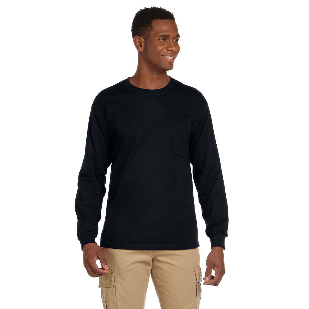 Gildan Men's Black Ultra Cotton 6 oz. Long-Sleeve Pocket T-Shirt