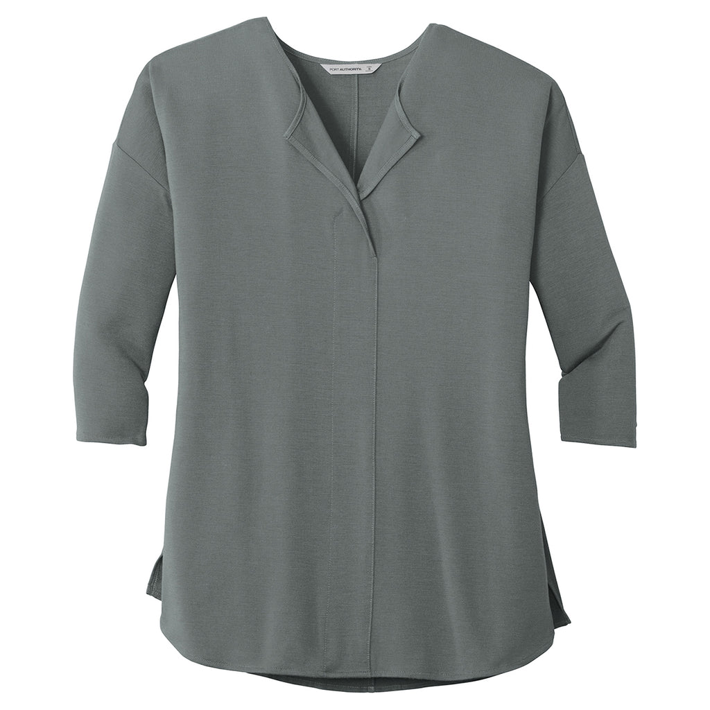 Port Authority Women's Grey Smoke Concept 3/4-Sleeve Soft Split Neck Top