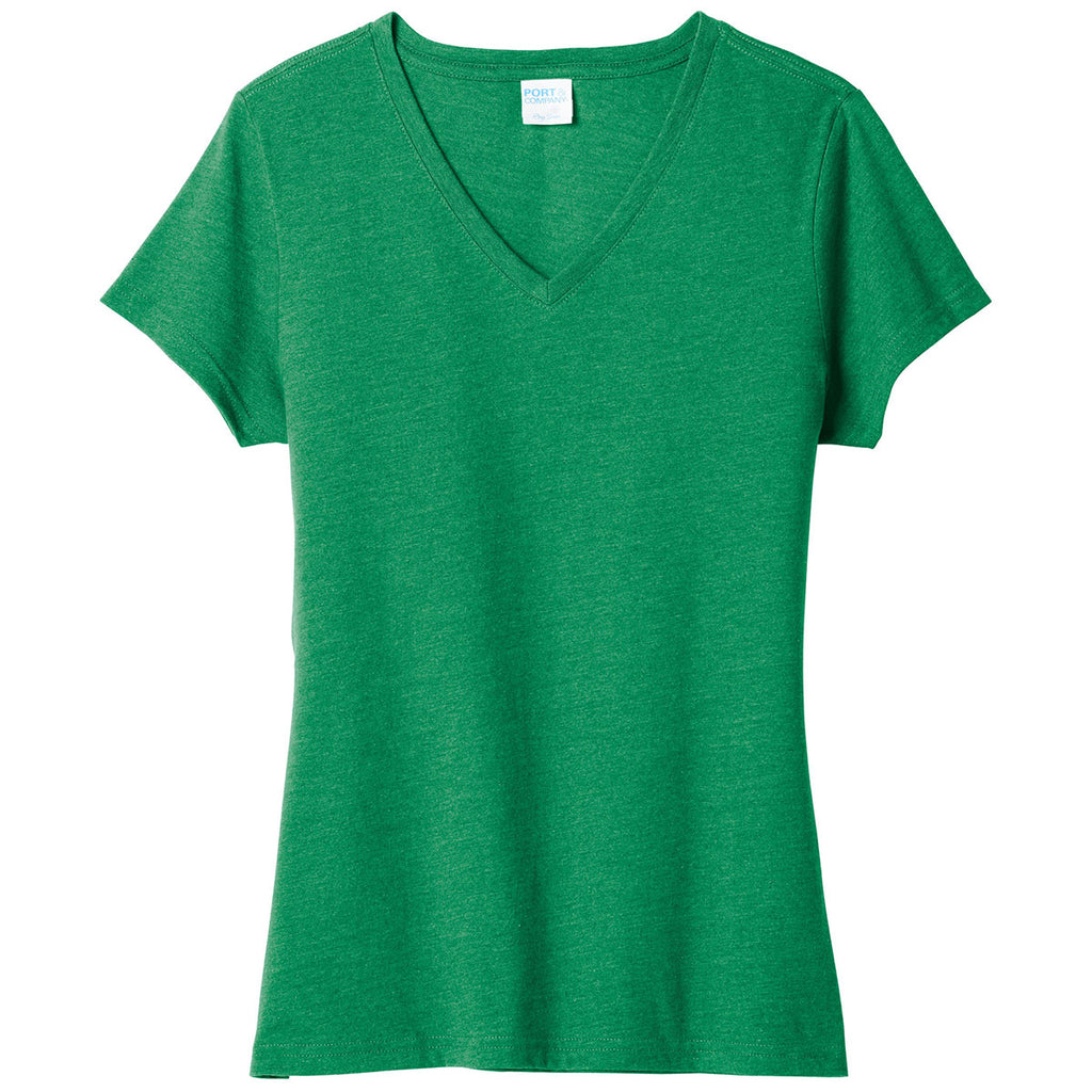 Port & Company Women's Athletic Kelly Green Heather Fan Favorite Blend V-Neck Tee