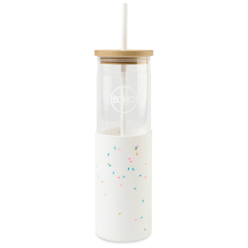 This chic Aviana Confetti Journey Tritan Tumbler with Straw - 20 Oz is an on-trend tumbler that will make your company's custom logo look better than ever. Great for taking water or iced coffee with you on the go, details like the bamboo lid, reusable plastic straw, and silicone sleeve come together in perfect harmony.