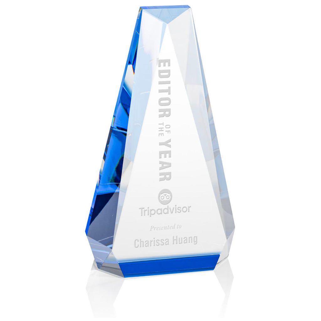 Show your custom style with the St. Regis Blue Carmel Award 4.75" x 8" x 1.625" - Laser Engraved. This substantial freestanding award is a work of art in its own right. It conveys the message of a powerful recipient who has accomplished great things for themselves, others, and/or the company. Order yours to make your next event something special.The minimum order for this product is 1 piece.