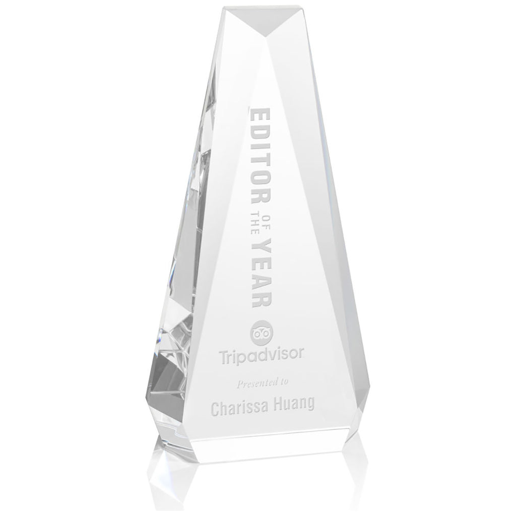Show your custom style with the St. Regis Clear Carmel Award 4.75" x 9" x 1.625" - Laser Engraved. This substantial freestanding award is a work of art in its own right. It conveys the message of a powerful recipient who has accomplished great things for themselves, others, and/or the company. Order yours to make your next event something special.The minimum order for this product is 1 piece.