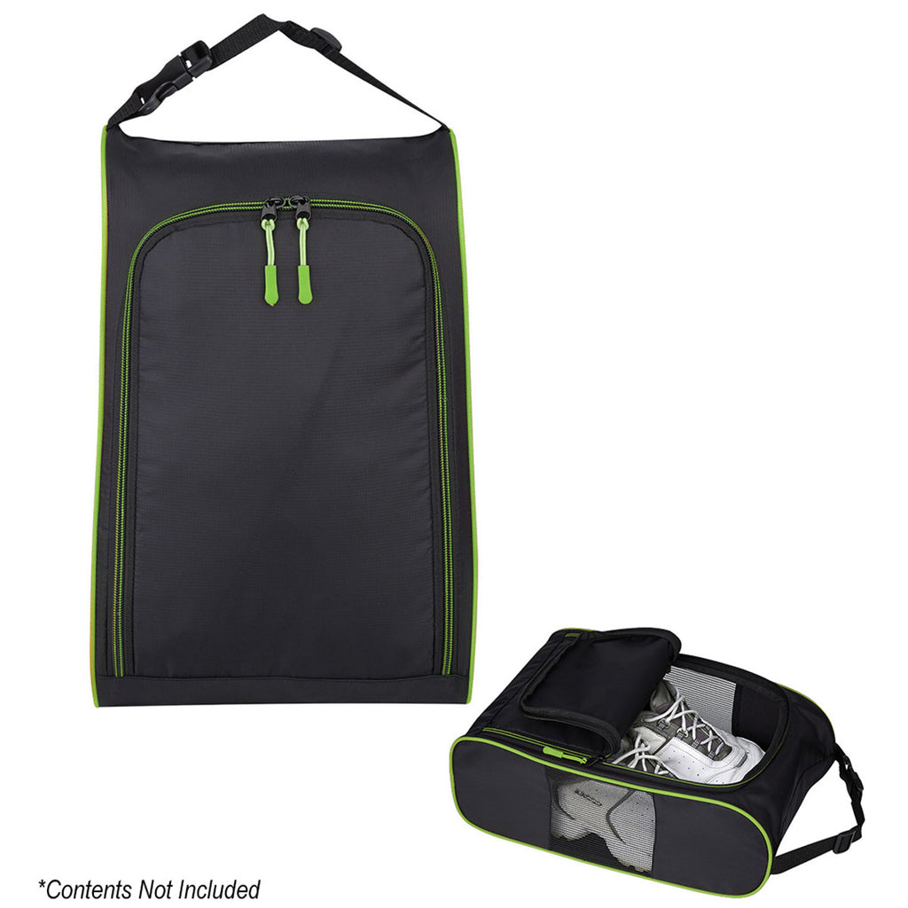 Hit Black/Lime Green Crosstown Side-Mesh Shoe Bag with your corporate logo is the safe, clean, and easy way to keep your shoes at hand and away from clean clothes. Whether traveling across the world or across town, this zip-open bag with mesh side panels will keep your shoes separate from other items. Choose from several zipper liner and pull color options.