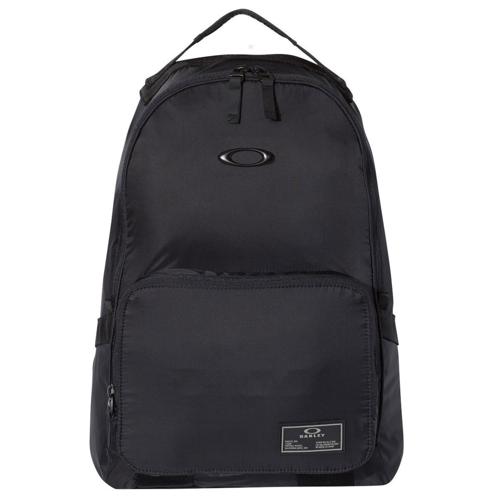 Leave a lasting positive impression in the job candidates you meet at the next company recruiting event by ordering the Oakley Black 18L Packable Backpack. By adding your corporate logo on the large embroidery area, you create dozens of walking billboards that market your company at industry trade shows. Durable 100% nylon resists rips and tears to give you the ultimate business travel bag for years to come. Padded shoulder straps eliminates the discomfort caused by inferior designed luggage. Smooth 70D ripstop lining protects vulnerable electronic devices from the damage caused by strong impacts absorbed in airplane luggage compartments.