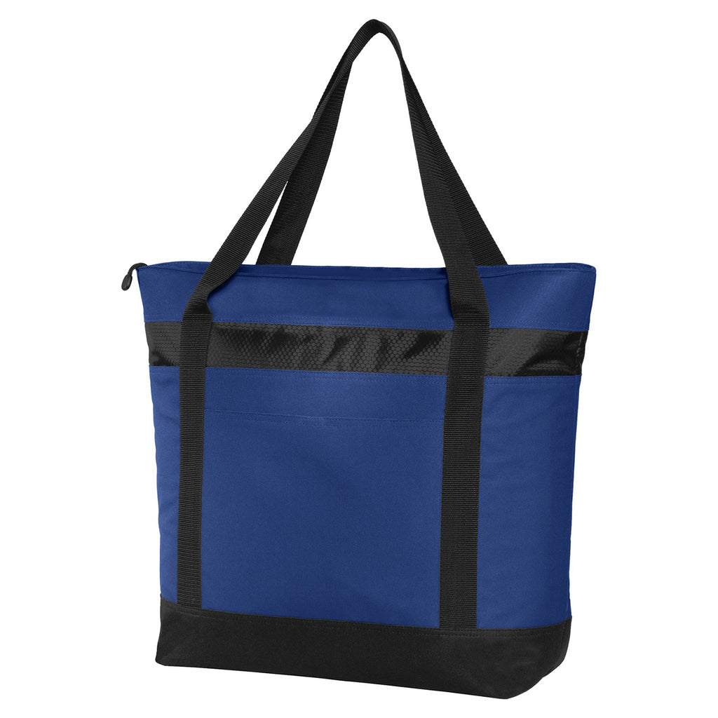 With a large capacity, the logoed Port Authority True Royal Large Tote Cooler takes care of your storage needs for corporate picnics and parties. Web carrying straps provide supreme comfort while you carry cans of your favorite beverage. The heat-sealed and water-resistant lining protects food and drink against exposure to harsh weather conditions. Zip the top closure shut to ensure everything stored inside of the perfect corporate gift remains delicious and fresh. The denier polyester canvas exterior resists rips and tears to offer long lasting durability. Attach your corporate logo and watch awareness of your company soar. Perfect for your outdoor company event or a fun giveaway item as a small way of saying thank you.