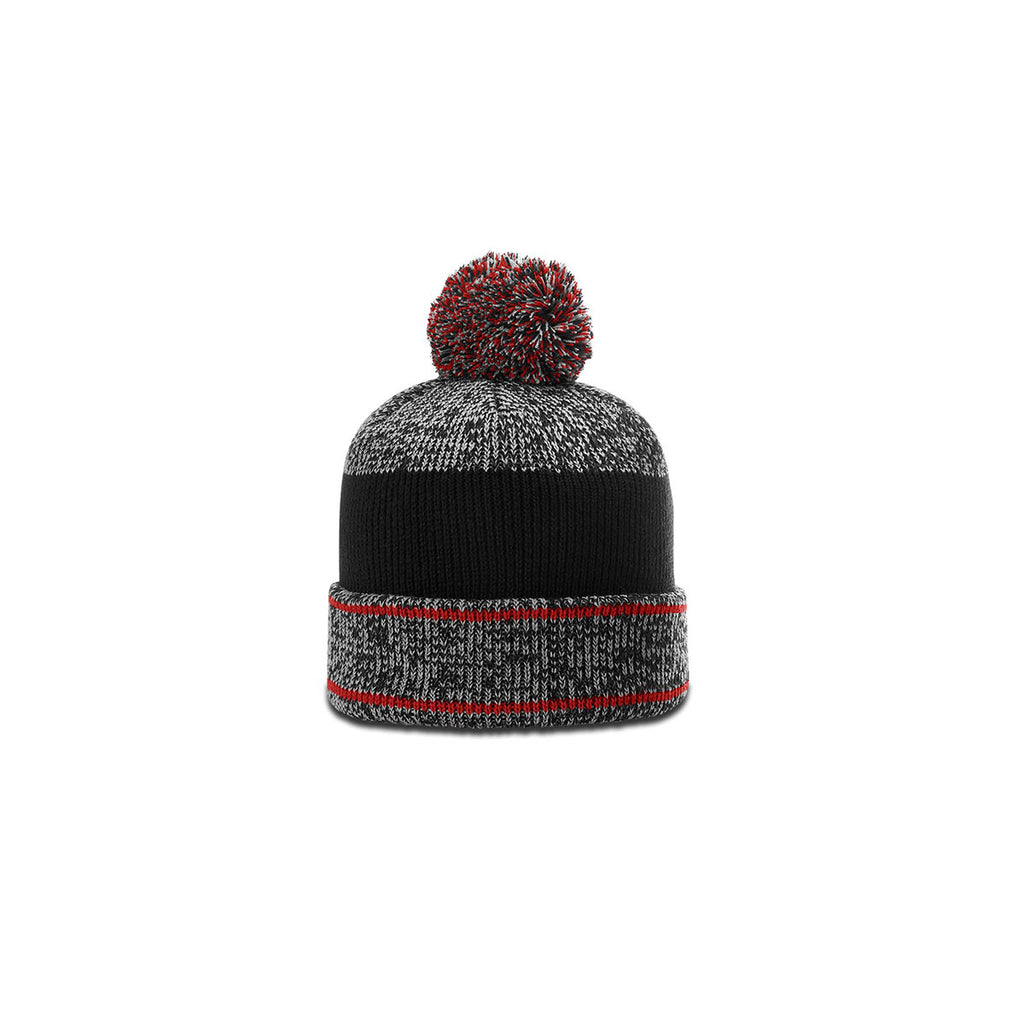 Richardson Grey/Red/Black Heathered Pom Beanie with Cuff