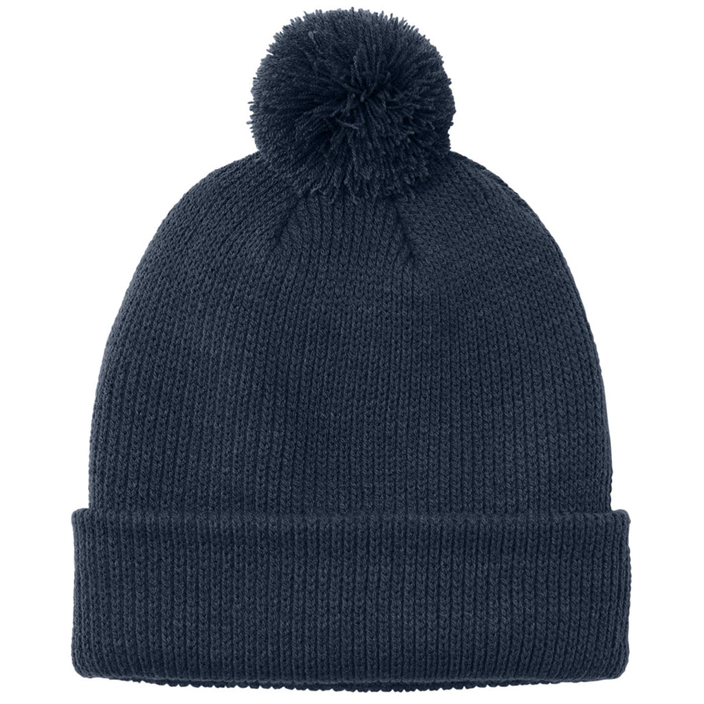 Add your corporate logo to the Port Authority River Blue Navy Cozy Pom Beanie made of 100% acrylic to create a warm option when the weather turns cold. Order several to add to your logoed apparel line to prepare for cooler weather. Great for skiing, sledding, and general cold weather wear or fashion. Place an order today.Highlights