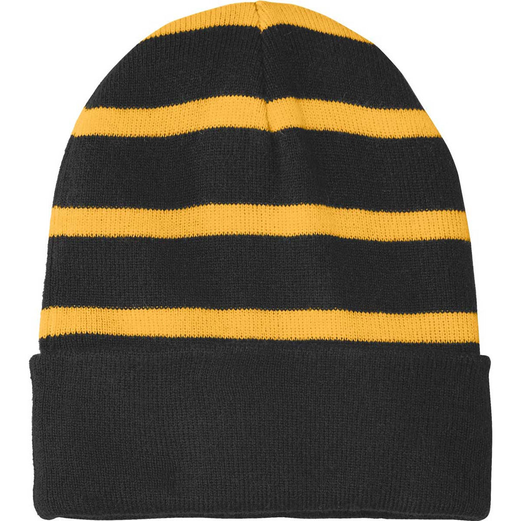 Sport-Tek Black/Gold Striped Beanie with Solid Band