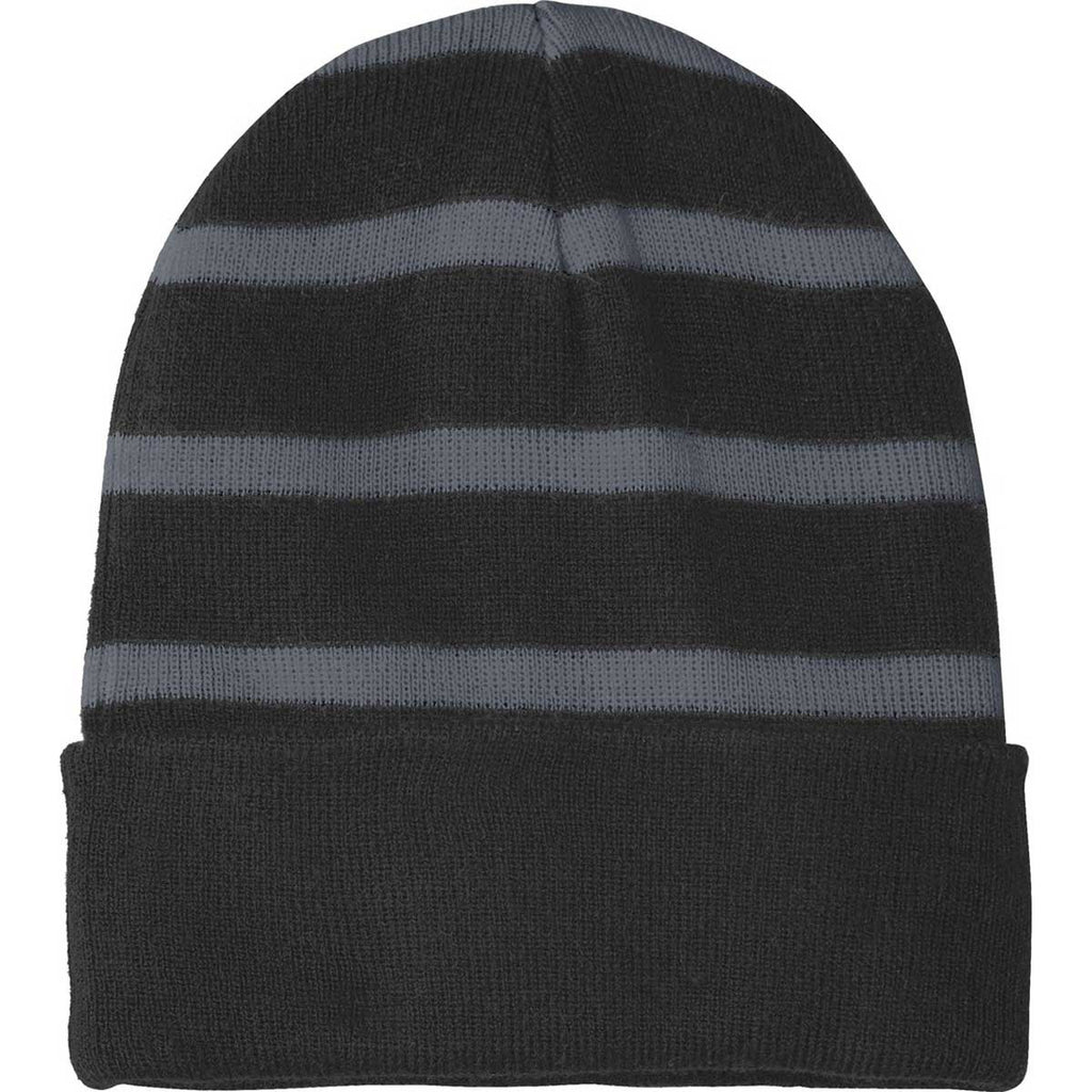 Sport-Tek Black/Iron Grey Striped Beanie with Solid Band