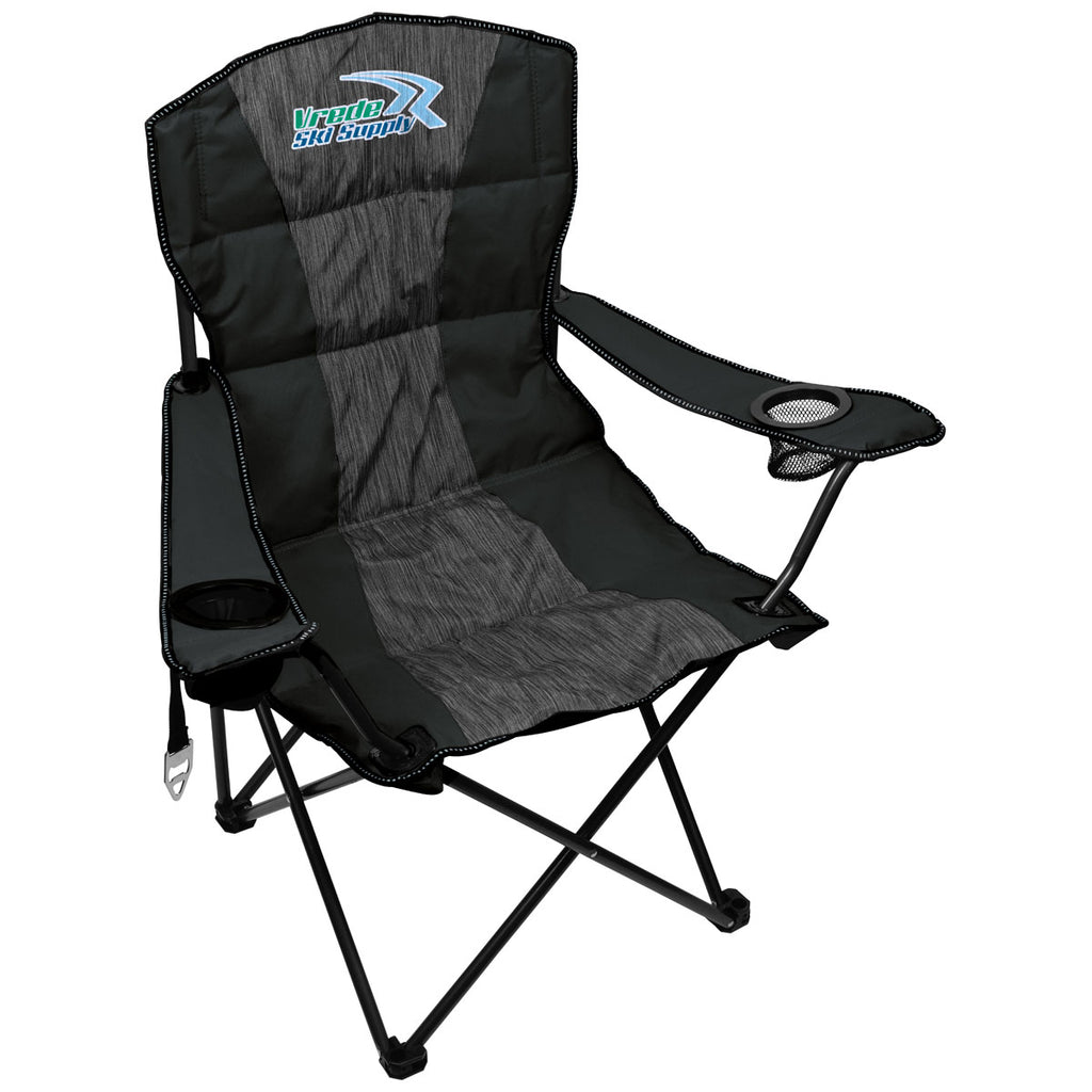 The BIC Black Premium Heather Stripe Chair is an essential outdoor accessory that is ideal for any corporate retreat, outdoor event, or premium giveaway. Made to support up to 300lbs, this contemporary folding chair will show off your company's custom logo like no other item can. It features pockets, a bottle opener, and other awesome extras.