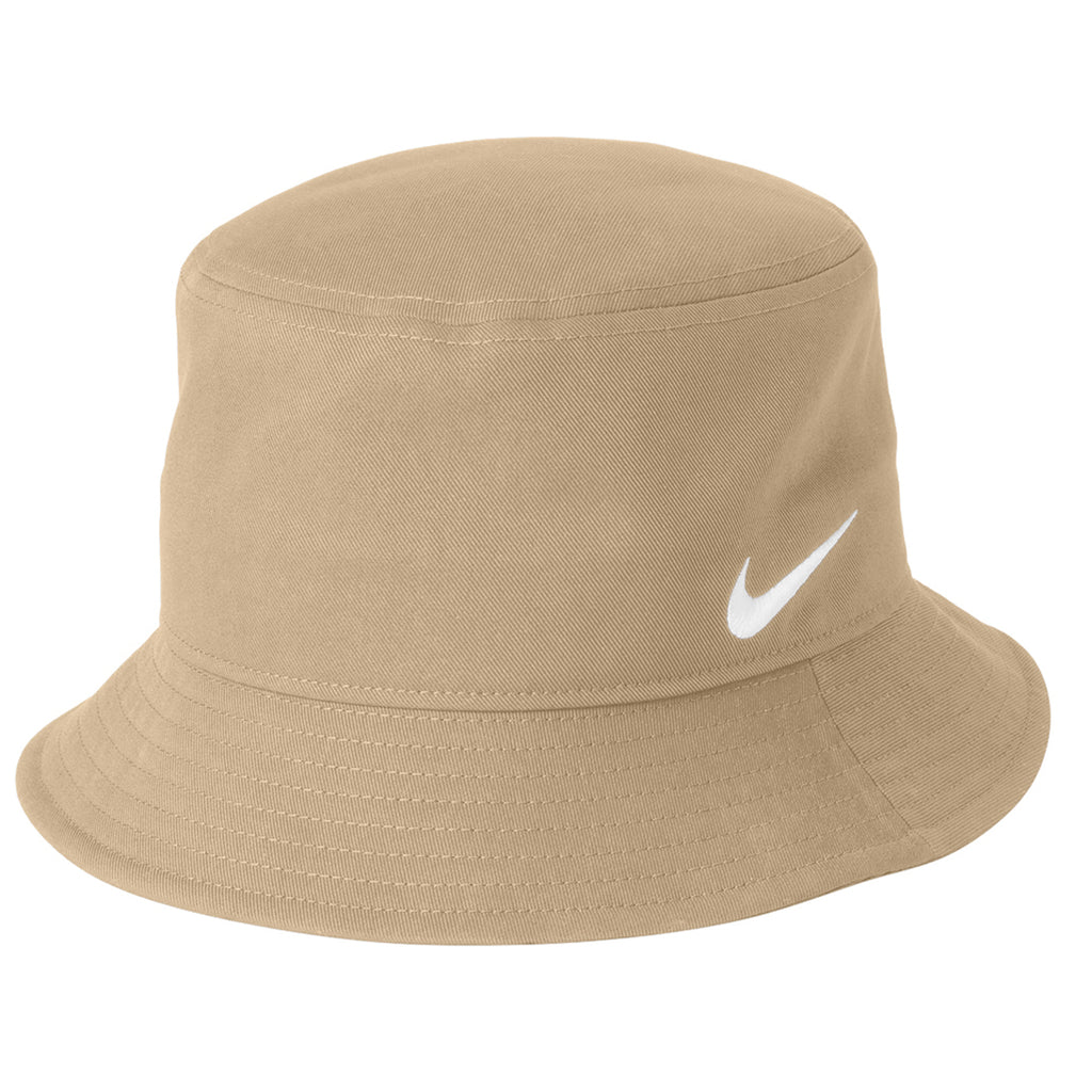Nike Khaki Swoosh Bucket Hat with a custom logo is a fun way to top a look. This bucket hat offers 360-degree coverage to keep you cool while looking cool. Featuring a Nike Swoosh on one side, the recycled polyester twill bucket hat will be a hit with most wearers. Place an order right away to make sure you are protected the next time you enjoy time on the water or resting by the pool.This product cannot ship outside of the United States.