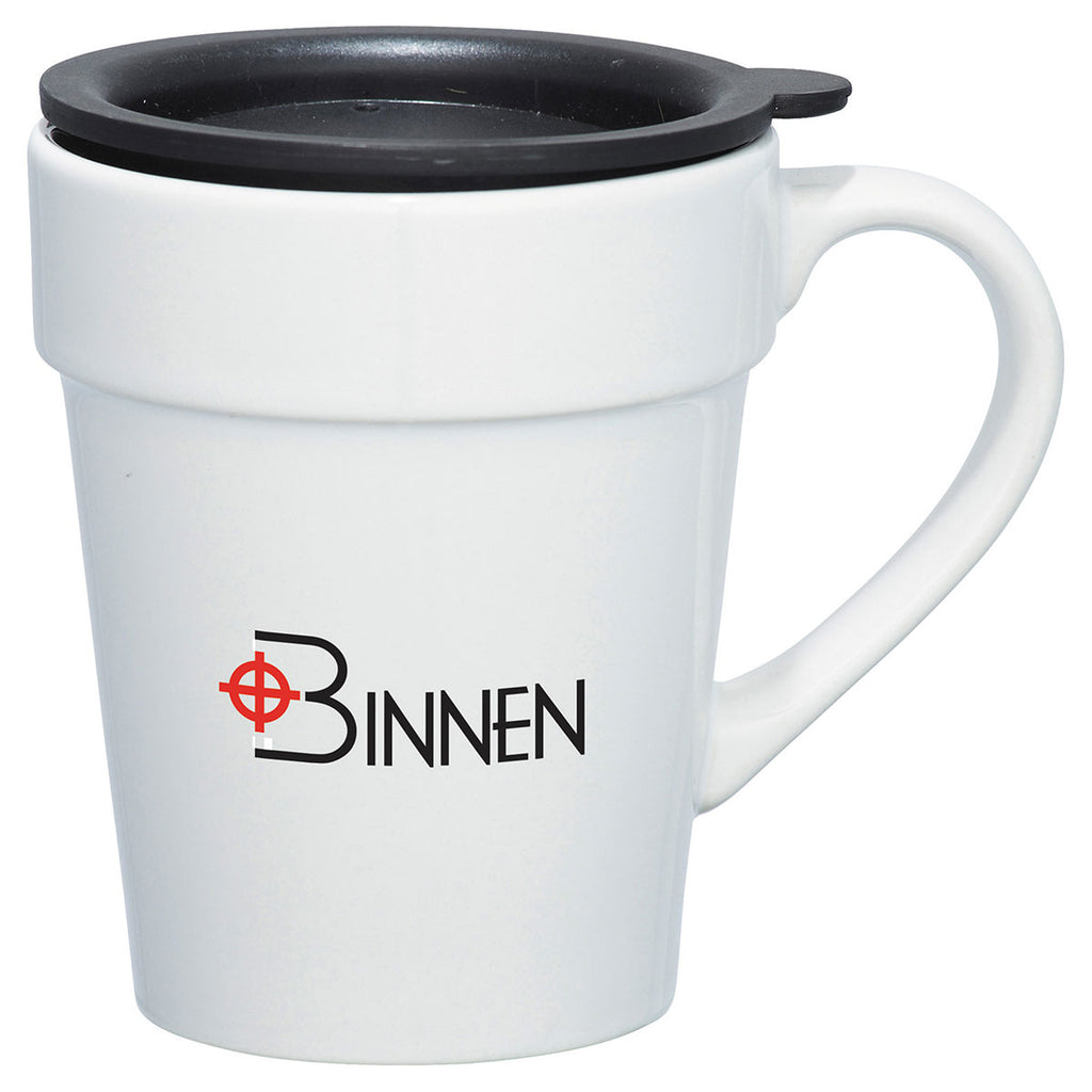 The modern look of the Bullet White Habanera 10oz Ceramic Mug is paired with a large handle and a snap-on lid. Add your custom logo to the base to promote your business. The gift is great for long-tenured workers as an anniversary gift, but you can also offer this as part of an employee welcome package.The minimum order for this product is 150 pieces.