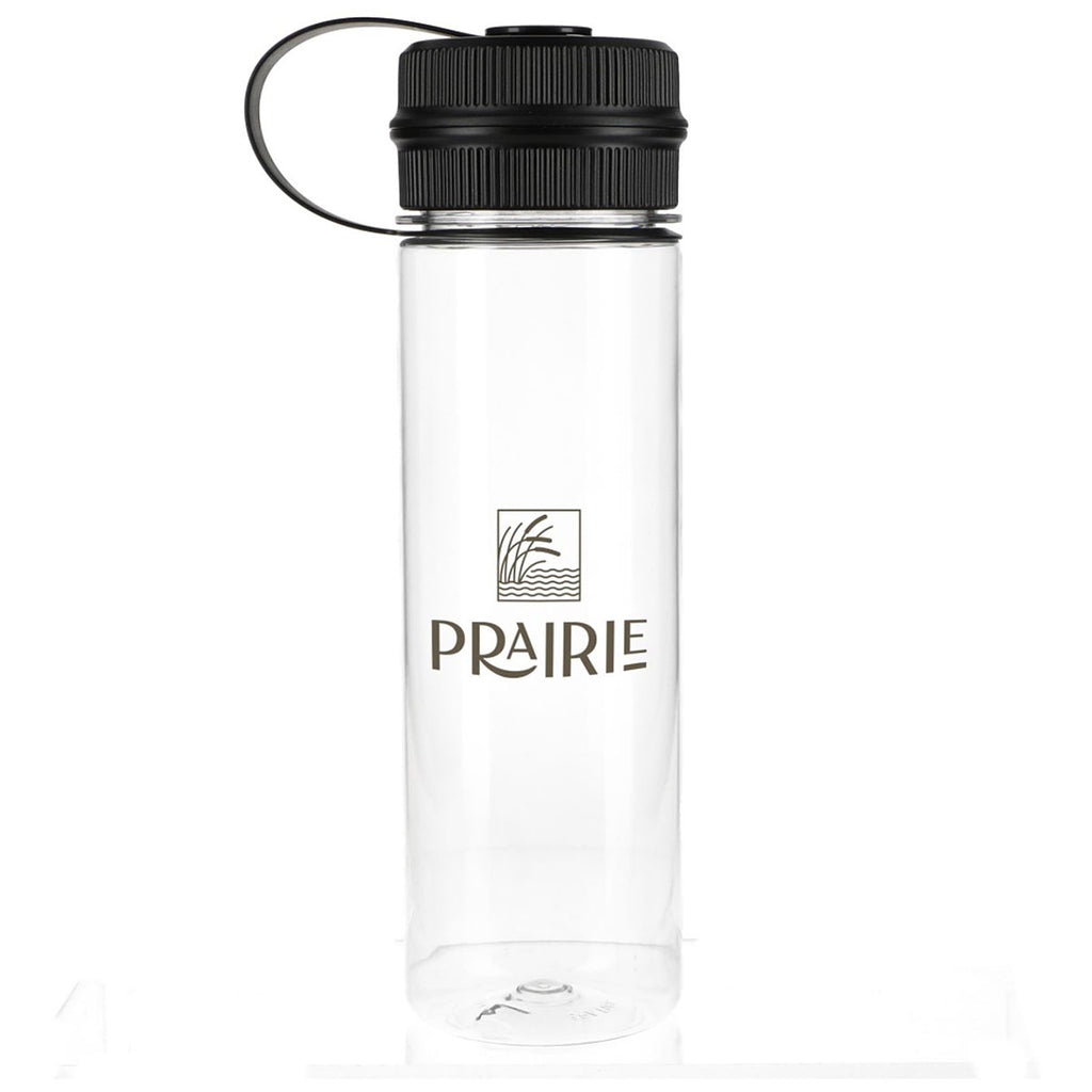 The Bullet Clear Venture Recycled R-PET Sports Bottle 21oz is versatile, on-trend, and built to last. The 100% leakproof lid is secured to the bottle with an easy-carry tether. The top of the easy-grip lid effortlessly twists apart for access to the chug spout and the lower part completely twists off to access the wide opening for easy cleaning and refilling. Great for lightweight hydration for long hiking or a quick workout. Available to be customized with a company logo.