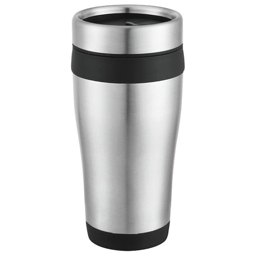 Discover the perfect blend of durability and style with the Carmel 16oz Travel Tumbler in Bullet Stainless Steel/Black. This tumbler features rugged double-wall construction, designed to withstand the demands of daily use while keeping your beverages at the ideal temperature.