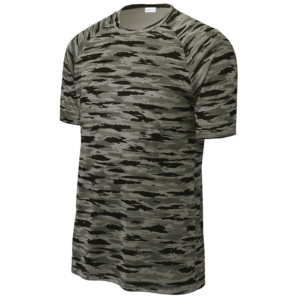Add your company's custom logo or design to the Sport-Tek Men's Black Drift Camo Tee to create a personalized piece that is great for athletes of all ability levels. Along with a classic camouflage print, the moisture-wicking fabric will keep your team comfortable even in the most high-pressure situations.