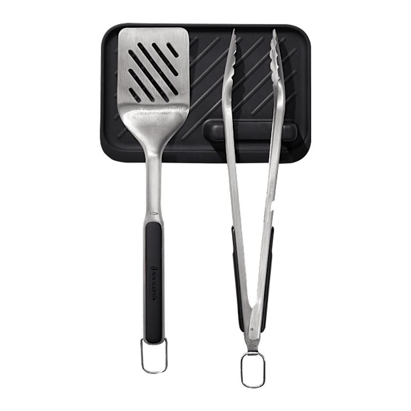 Have some fun with a custom OXO 3-piece Grilling Set. The set includes the essentials of scallop tongs with a built-in bottle opener, a stainless steel turner, and a silicone tool rest so your food can be treated to the best. Perfect as a gift for the grillmasters in your life who know how to throw a party and cook a meal.