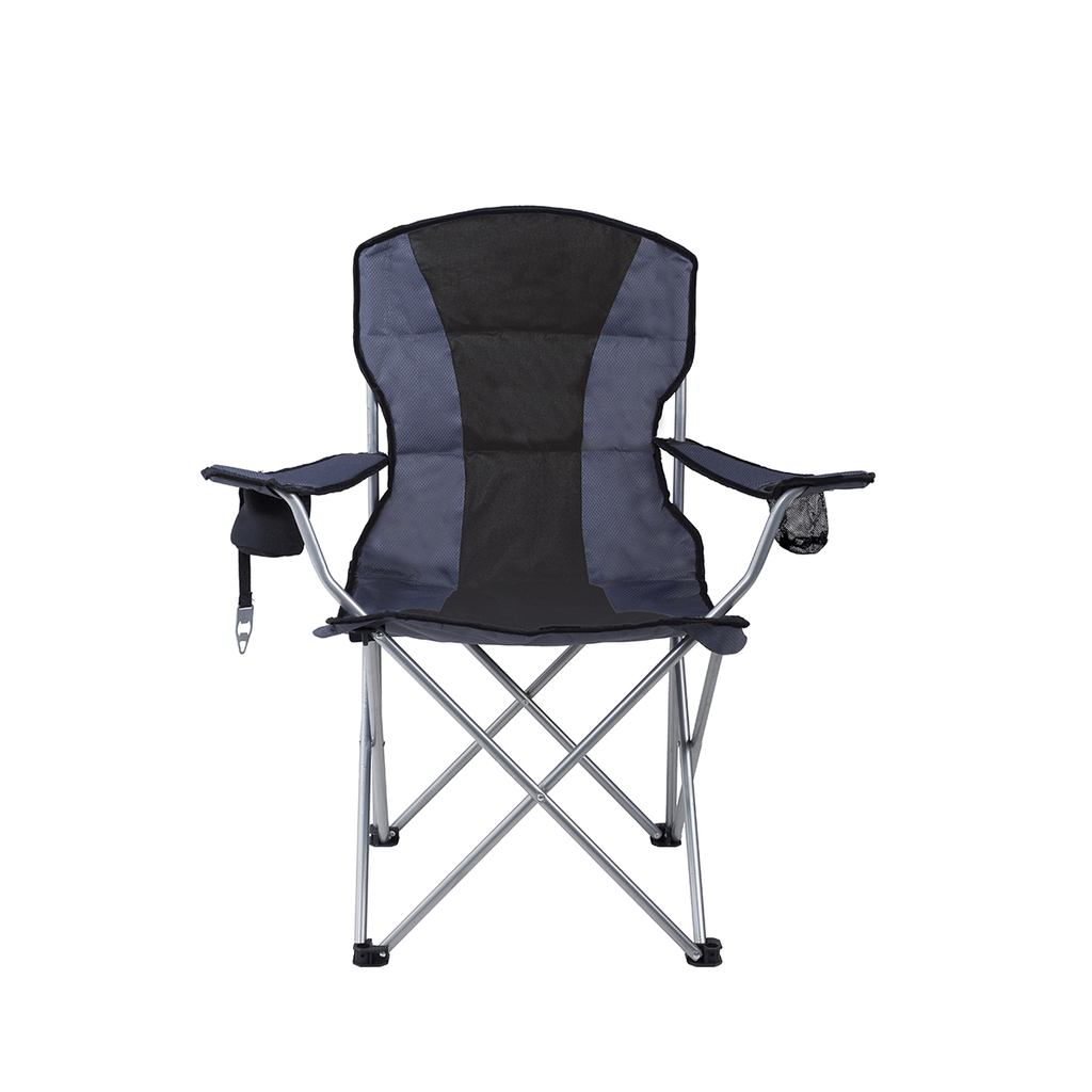 A high-quality folding chair perfect for promoting high-quality brands. The steel frame supports up to 300 lbs. with a padded back and seat panels for added comfort. Perfect for lounging, this premium chair also includes a mesh pocket, insulated pocket and attached bottle opener. Carry bag with strap also included.
