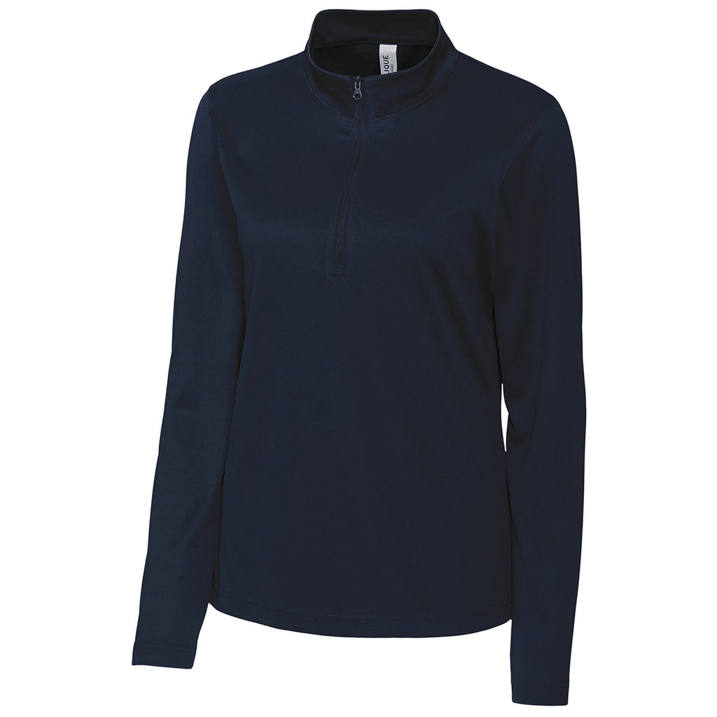 The Clique Women's Dark Navy Spin Half Zip top combines style and comfort in one must-have long-sleeve shirt. Ideal for yoga class or a mountain biking adventure, this top added with your company logo is sheer perfection. Choose from a variety of lovely colors and enjoy fabulous features such as a 100% spin-dye polyester material, mock neck style with half zip, UPF 50+ sun protection, and moisture wicking capabilities. This shirt is going to be a popular corporate apparel item, so be sure to order enough for your employees as well as for your upcoming corporate events, such as trade shows and recruiting events.Corresponding Men's Style:Clique Men's Dark Navy Spin Half Zip