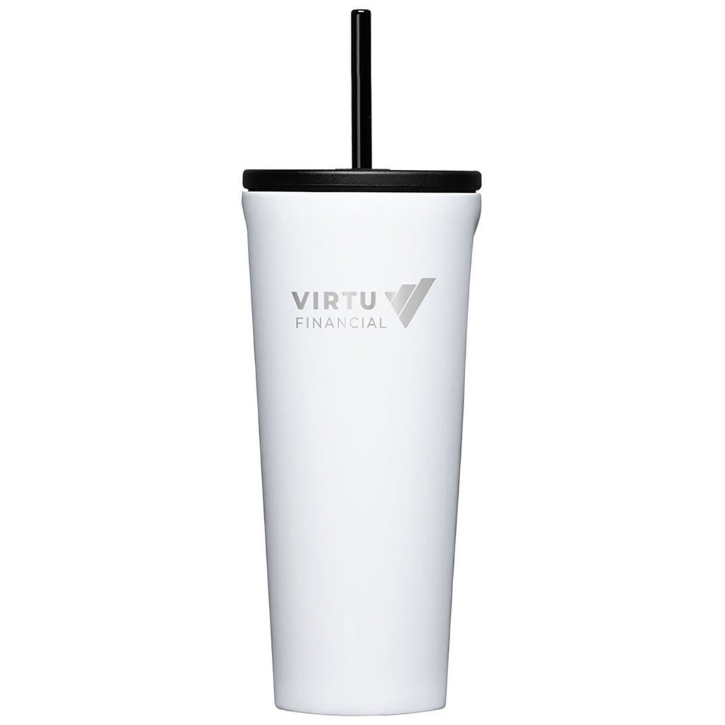 A sleek, stylish exterior makes the Corkcicle White Cold Cup - 24 Oz. a great way to ensure your company's custom logo always gets spotted in a crowd. Complete with extras like triple-insulated design and easy grip sides, this makes an excellent employee appreciation gift or trade show giveaway item.