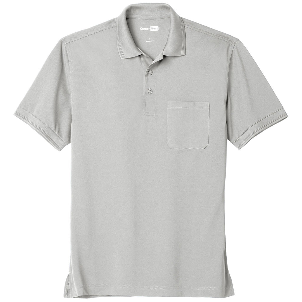 CornerStone Men's Light Grey Industrial Snag-Proof Pique Pocket Polo