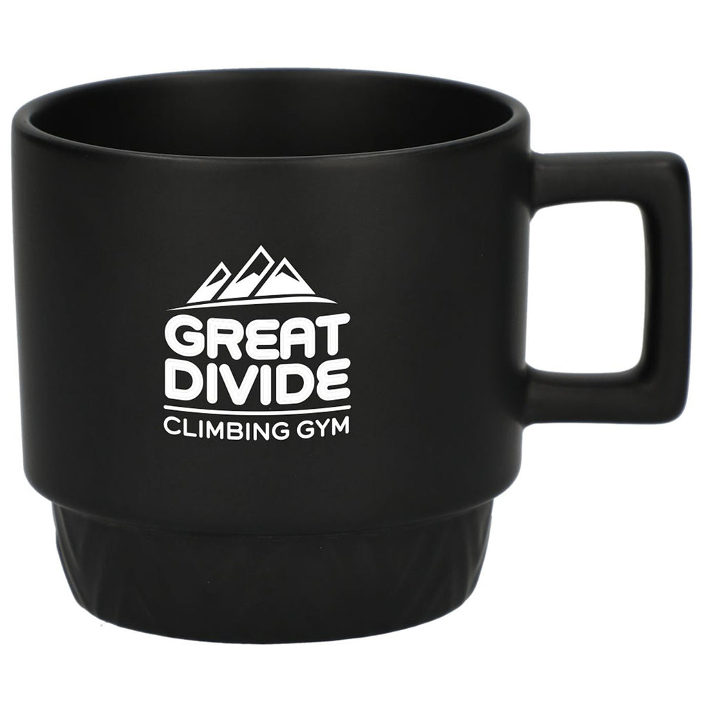 The Bullet Black Paco 12oz Ceramic Mug is a perfect blank canvas for your brand's custom logo or design. A subtle herringbone design along the base adds extra elegance to this understated coffee mug. Plus, a unique stackable design makes it easy to keep any kitchen or break room organized.