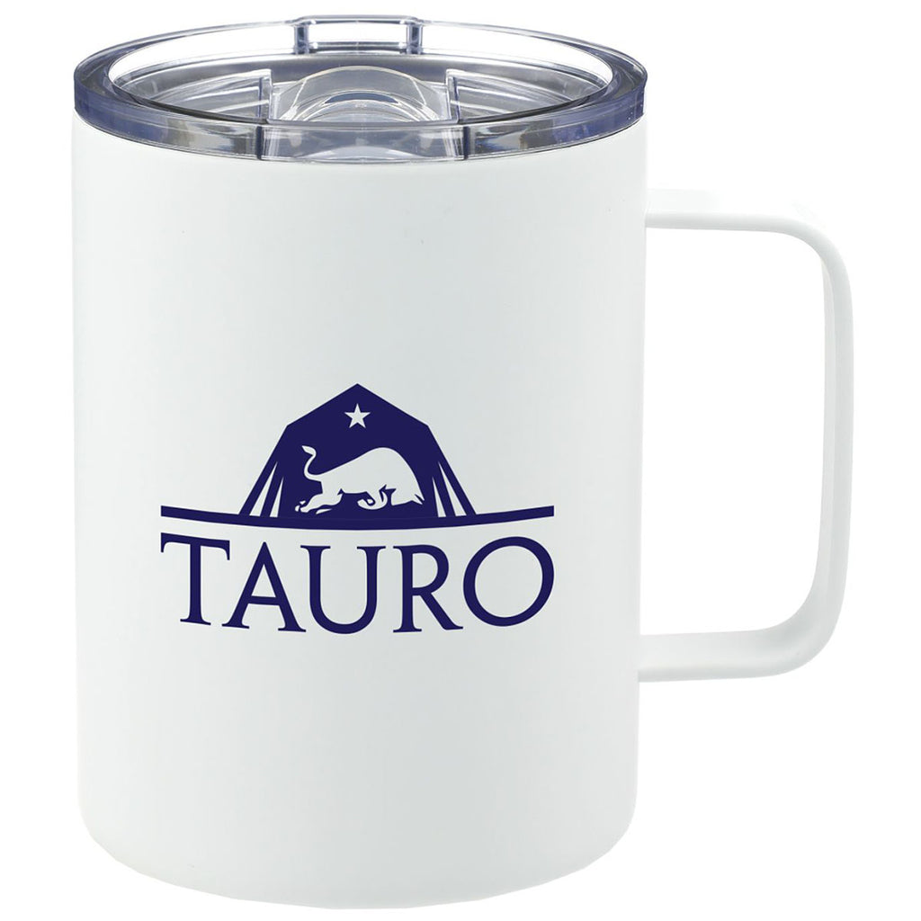 Great for campsites, tailgates, or use around the office, the Bullet White Rover 14oz Vacuum Insulated Camp Mug is ideal for any occasion. This handled mug includes durable, double-wall stainless steel vacuum construction so that your beverage stays at an ideal temperature for hours - all it's missing is your company's custom logo.