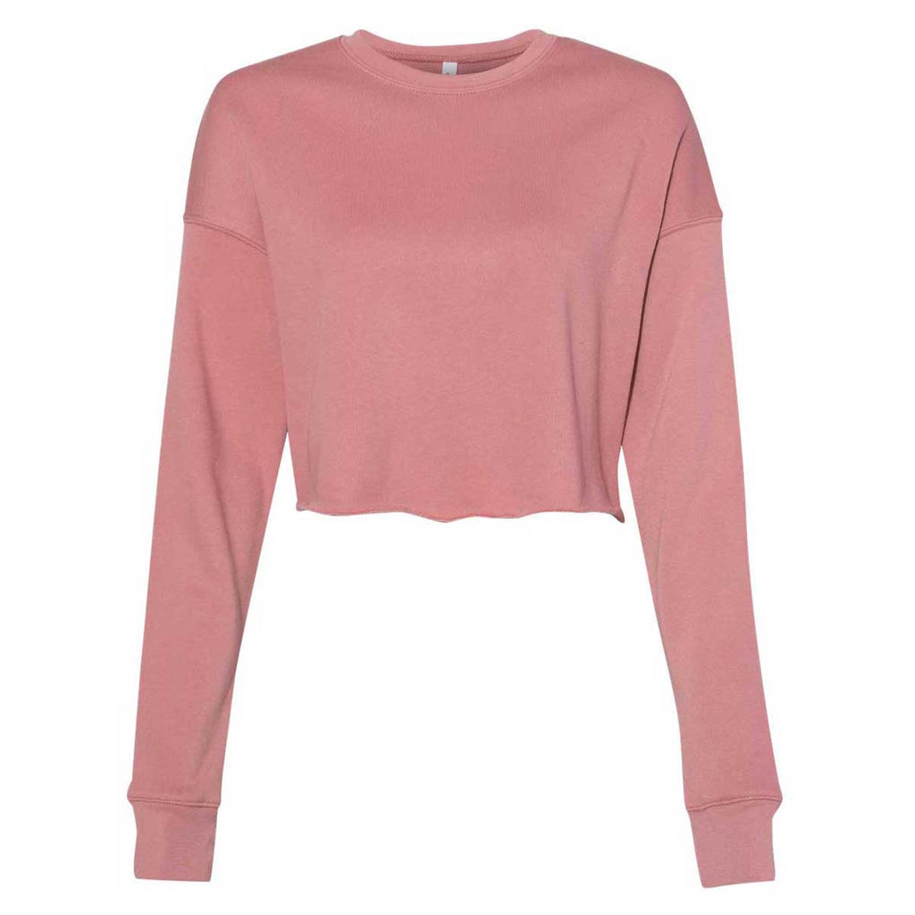Look and feel sexy in a custom Bella + Canvas Women's Mauve Cropped Crew Fleece. Your custom logo will stand out on this Airlume combed and ring-spun cotton and poly fleece that can easily be screen printed. The dropped shoulder and raw hem add an edge to this fleece that could serve as a custom gift for those who enjoy time at the gym or used as employee apparel in certain settings. Great to wear at home or out running errands with friend, this soft fleece is more about style and comfort than warmth. Wear layered with a tank or alone as you want.Highlights