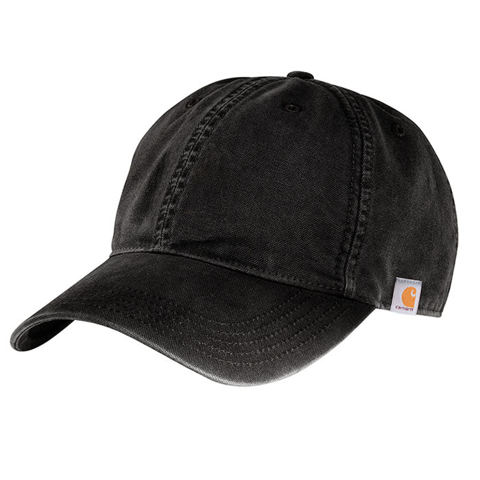 Create a custom embroidered look with the Carhartt Men's Black Cotton Canvas Cap. Offering the safety and protection of a rugged cap with the feel of an old favorite. Made of 100% cotton washed canvas this cap would be a welcome addition to employee apparel or general work wear for almost any job. This cap would fit in at restaurants, on construction sites, or working on the farm during the summer months. Add your corporate embroidery of choice to promote company brand or your organization to all who see you hard at work. Offering a light structure with precurved visor, Carhartt Force sweatband and FastDry technology this is the perfect choice for most occasions.