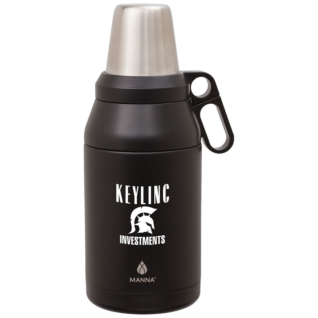 It will be impossible to ignore your custom company logo when it's printed or laser engraved on the Manna 64 oz. Stack Growler. Available in a range of color options, this large beverage container comes with four stainless steel 12 oz. cups stacked conveniently at the top. This is an employee gift everyone will want.The minimum order for this product is 12 pieces.