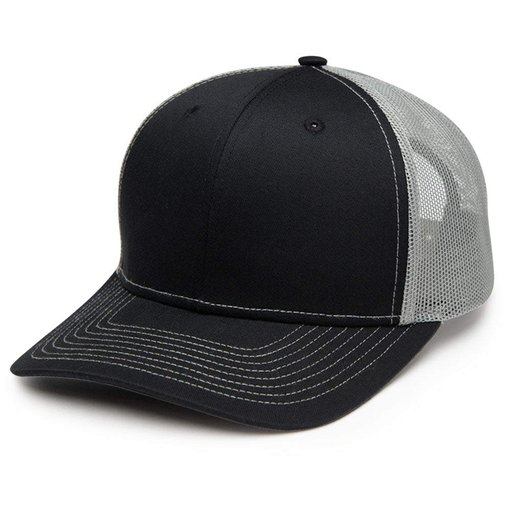Complete your look with a custom Hit Black with Grey Mesh The Hauler Classic Trucker cap. This iconic style cap is a crowd favorite with a 6-panel, medium profile with mesh on the back and a cotton sweatband. An adjustable plastic snap closure means this is a one-size-fits-most design that the majority can enjoy. Perfect for daily wear at work or play.