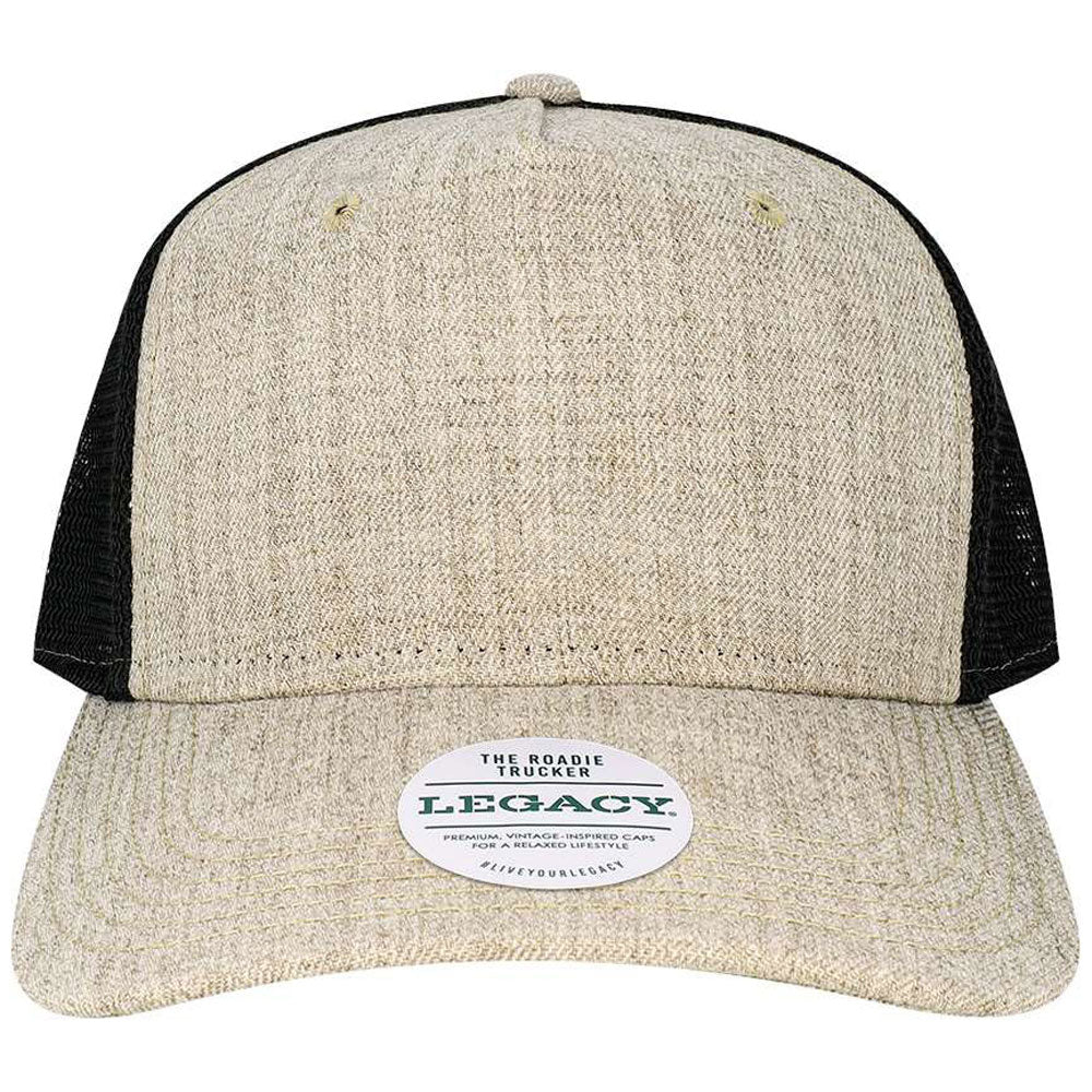 Legacy Heather Tan/Black Five-Panel Trucker Cap