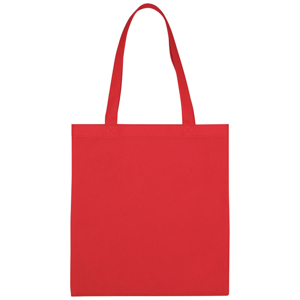 Try a corporate logo on the Hit Red Non-Woven Economy Tote Bag to make carrying items a breeze for your customers and yourself. These thin, foldable totes are great for trade shows and networking events as they easily hold multiple brochures and business cards. Available in a variety of bold colors, your logo will pop.
