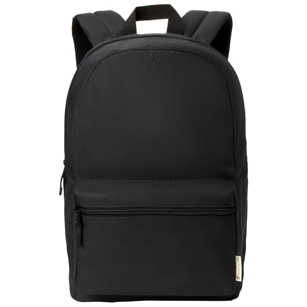 Add embroidery to the Port Authority Deep Black C-FREE Recycled Backpack for a simple, functional backpack that is good for the environment. The large main compartment is great for books or files while side pockets fuction for smaller items like keys, pens, or pencils. The padded shouldre straps mean you are comfortable whether heading to work, school, or a weekend away. Order today.Highlights