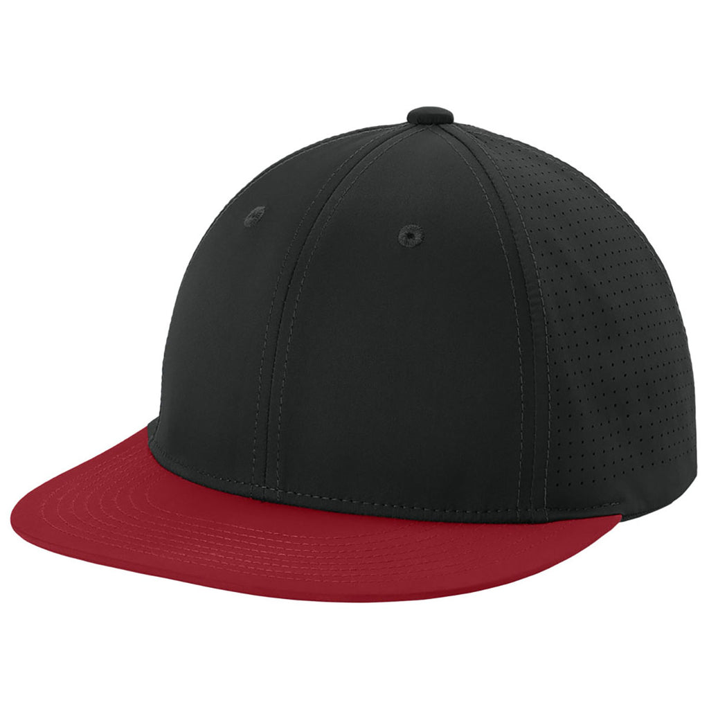 Sport-Tek Black/Deep Red/Black Pro-Cut Stretch-Tek Cap with your custom logo perfectly blends style, fit, and comfort. Made with stretchable fabric, it adjusts to your head for a custom feel. The moisture-wicking technology keeps you dry, making this cap perfect for outdoor activities or casual wear. Its sleek design is ideal for both sports and everyday fashion.Highlights