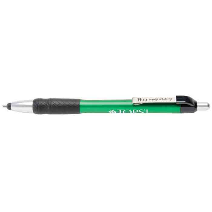 Have you grown tired of click actions Hub Pens Green Maxglide Click Metallic Stylus pens that are all click, but no action? Hub Pen has the solution to your dilemma by offering a pen that always produces a tip, after you click the mechanism that pushes the tip to a writing surface. Move between taking handwritten ink notes and sending messages via your tablet by using the soft stylus. The highly functional stylus located on the tip of the pen never scratches sensitive touchscreen surfaces. Your writing hand will thank you for using a pen that possesses an ergonomically designed hourglass shape. Add your corporate logo to make your company known throughout the community.