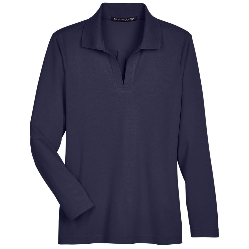 Devon & Jones Women's Navy CrownLux Performance Plaited Long Sleeve Polo