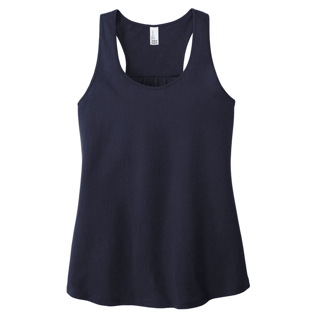 Corporate apparel does not have to be all about formal attire, as proven by the casual appearance that shines through for the screen printed District Women's New Navy V.I.T. Gathered Back Tank. Enjoy the super smooth comfort delivered by the 100% ring spun combed cotton fabric. Wear the tank to work outdoors in the summer, as well as when you lounge at home in the middle of winter. Hand out the chic tank to customer prospects at industry trade shows. Just remember to add your company logo to create more exposure for your brand.Highlights