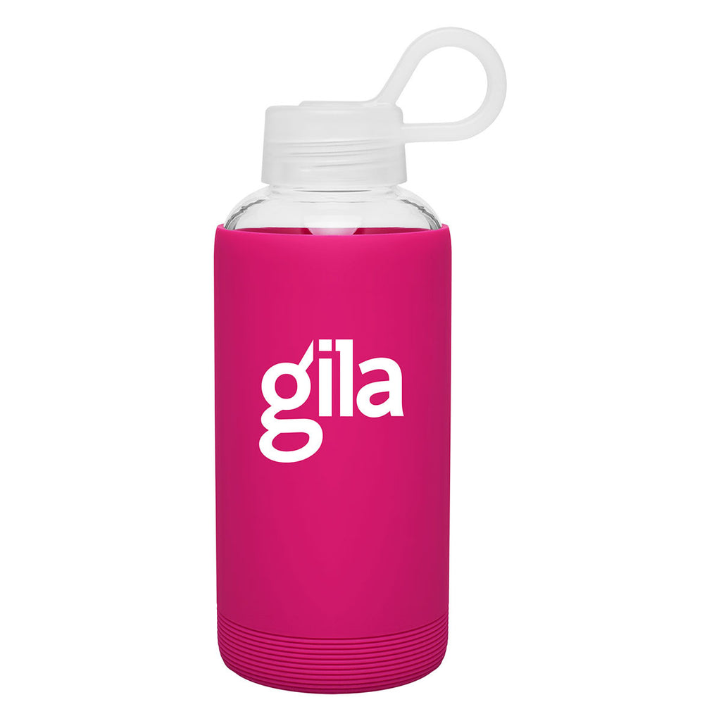 Want the healthy reassurance of a glass bottle with some additional protection? Then this H2Go Fuchsia Karma Glass Bottle 16oz is perfect for your mobile beverage containment. It includes a silicon sleeve that protects the glass from nicks during the rigors of daily life, while the carrying loop provides an added dimension of fun and convenience. Put it all together and you have one stellar way to keep your beverage handy. But don't forget to add your unique logo with Merchology if you want to fashion this bottle into a gift for clients, customers, employees, and more-or if you simply want it to keep for the team around the office.