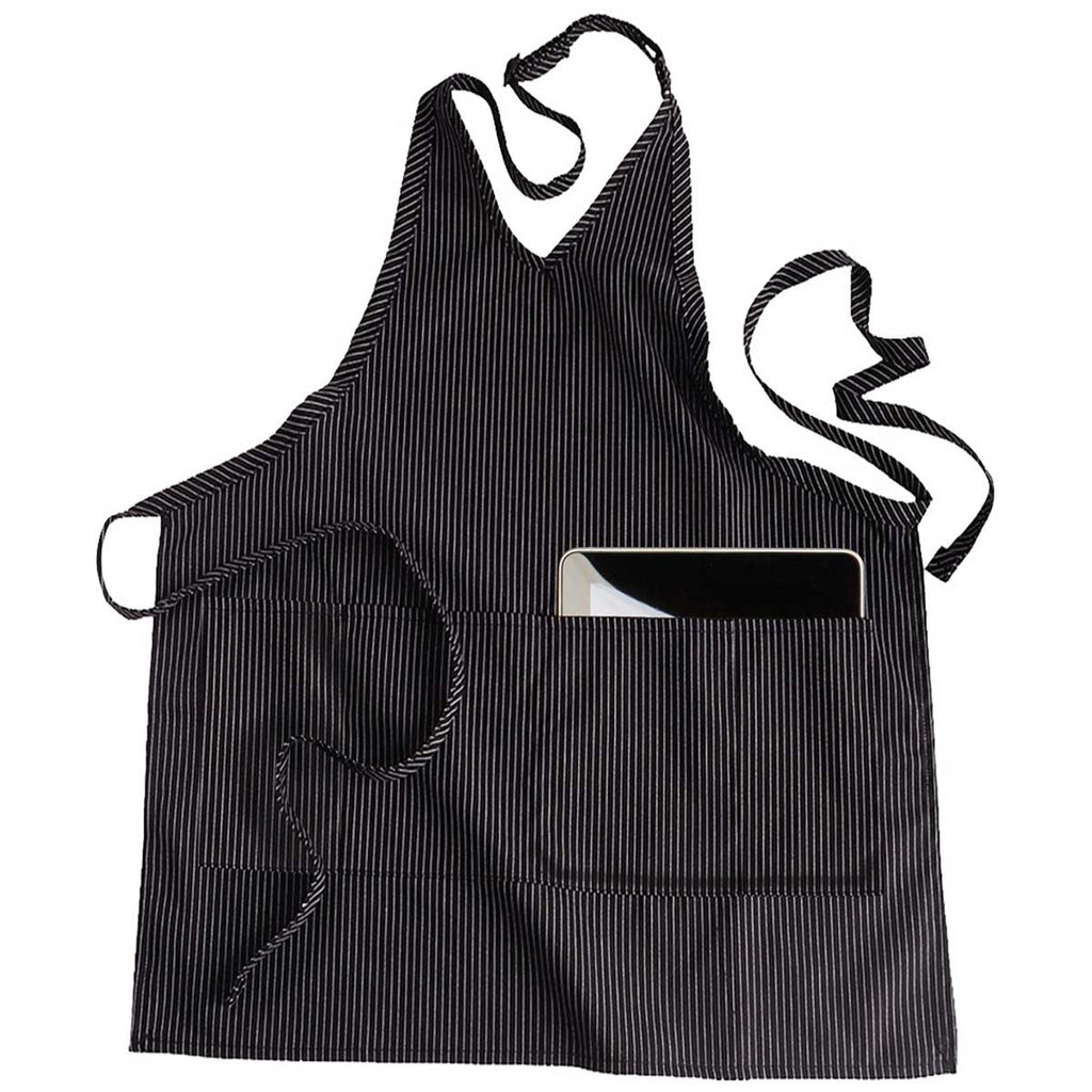 A custom embroidered Edwards Pinstripe 2-Pocket V-Neck Bib Apron is the perfect choice for those working in a kitchen, bakery, or cafe. The simple, straightforward design of this V-neck bib apron means your company logo will stand out for all to see. The 2 divided pockets allow you to store small necessary items like ordering pad, pen, and straws for easy access, while the neck slide makes fitting it to your height an easy adjustment. Available in 3 color combinations, the long ties for a front or back closure make this a one size fits most piece that is machine washable after a long day of work.Highlights