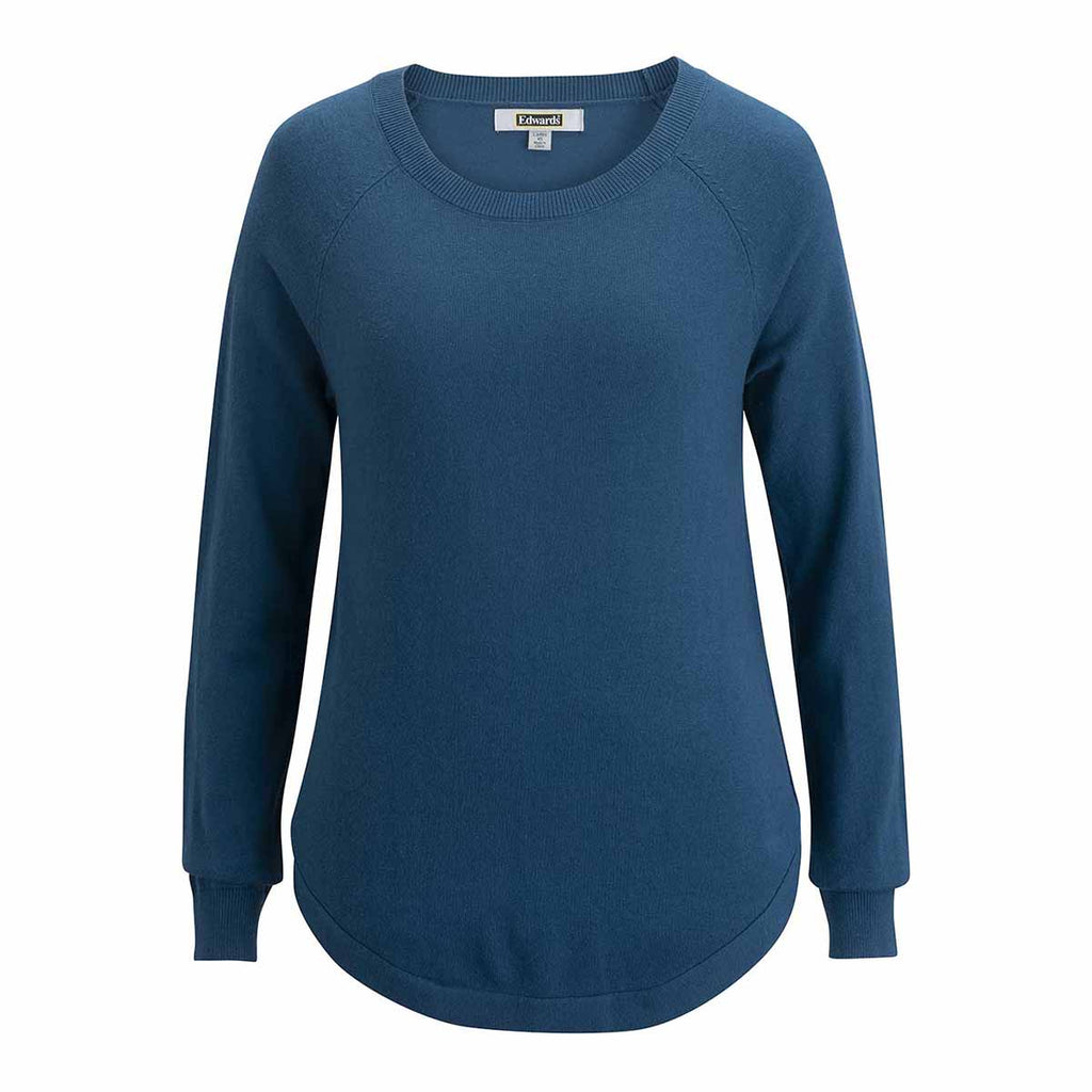Fashion meets function when it comes to the Edwards Women's French Navy Scoop Neck Tunic Sweater. This soft, comfortable layering piece will act as the perfect blank canvas for your company's custom logo or design. Breathable knit fabric also promises to keep the ladies on your team comfortable at tradeshows or other professional events.