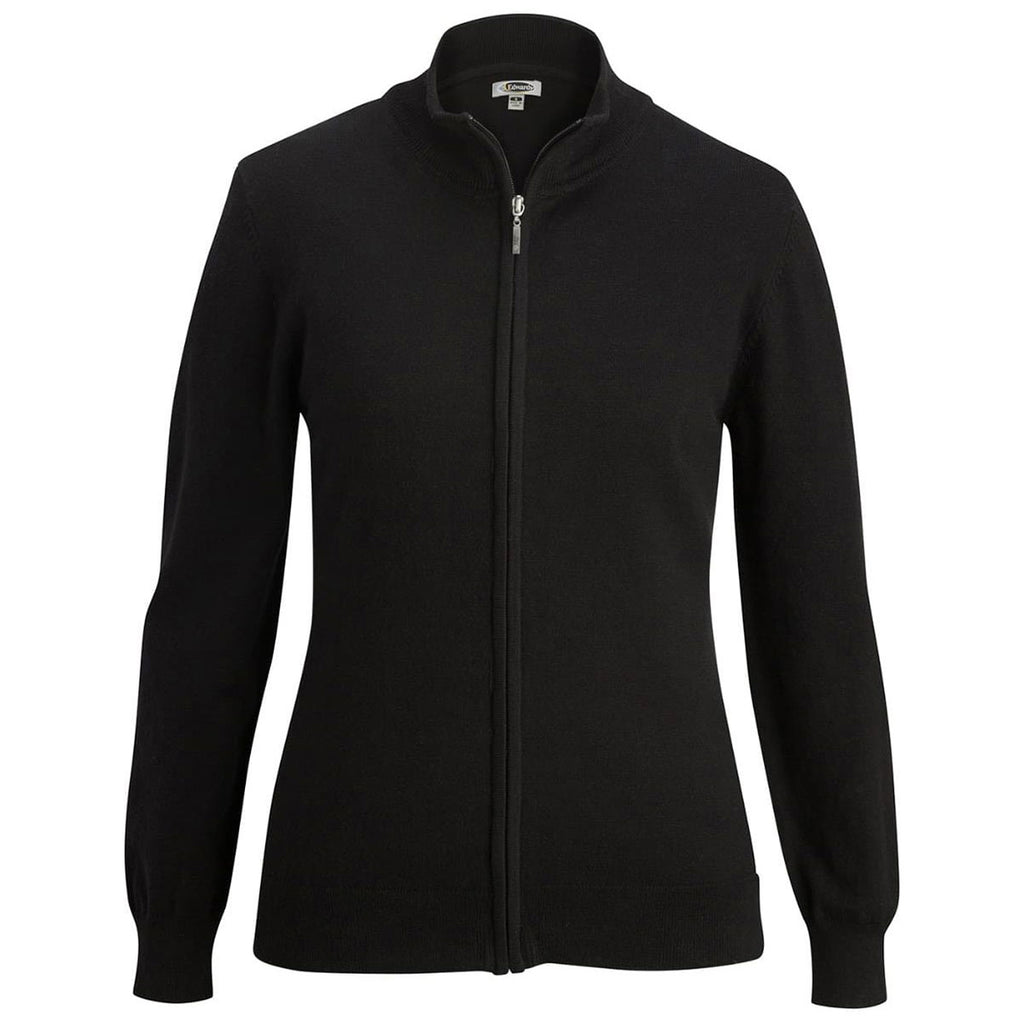 Add embroidery to the Edwards Women's Black Full-Zip Cotton Cardigan for a unique look that will get you noticed. The cotton, acrylic, nylon blend is lightweight with a smooth finish and traditional fit. The full-length nylon zipper with metal pull allows for easy on and off after your morning commute or as you finish up your workout. Add a company logo to use as part of a uniform or a custom design to add this cardigan to your own wardrobe. Machine washable in cold water, this will be a go-to piece whether for work or play.Highlights