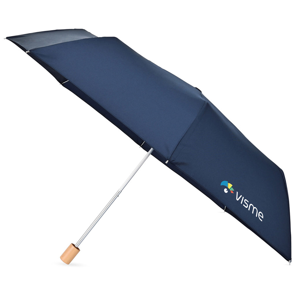 Design a corporate logo for the Elements Navy 43" Recycled Manual Folding Umbrella to give a useful gift that can be used as often as needed. The umbrella is made from recycled materials on a lightweight aluminum frame that opens manually. Perfect as a promotional item or gift for clients.