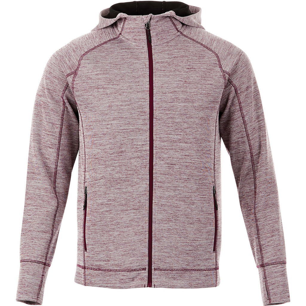 Who doesn't love a hoody? The Elevate Men's Maroon Heather Odell Knit Zip Hoody is no exception. Perfectly priced for the moisture wicking finish and complete with sleeve cuffs, thumb exits, and interior earbud guide and exit port, this hoody has it all. Add a bit more with a custom logo to show off during cold weather jogs or outdoor activities. Available in maroon, invictus, and charcoal heather or black, this polyester sweater double knit is full zip for easy on and off. A great corporate gift or something to use as employee apparel the full zip hoody goes from the gym to the office with ease. Design your logo and order today!Corresponding Women's Style:Elevate Women's Maroon Heather Odell Knit Zip Hoody