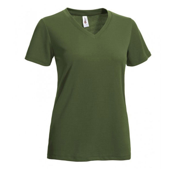 Expert's Expert Women's Military Green V-Neck Tec Tee will truly make you feel like the active lifestyle warrior you are. Enlivened by short sleeves and v-neck with curved hem, this tee flaunts a relaxed fit in feminine appeal. Crafted from sweat-wicking 100% microfiber polyester oXy mesh fabric. Treated with BodyFreshe anti-bacterial tech to keep the garment fresher and odorless for longer. Complete this women's tee with an imprint of your company's logo or message with our quick and reliable customization service. Perfect for sports events, corporate giveaway or general promotional merchandise.