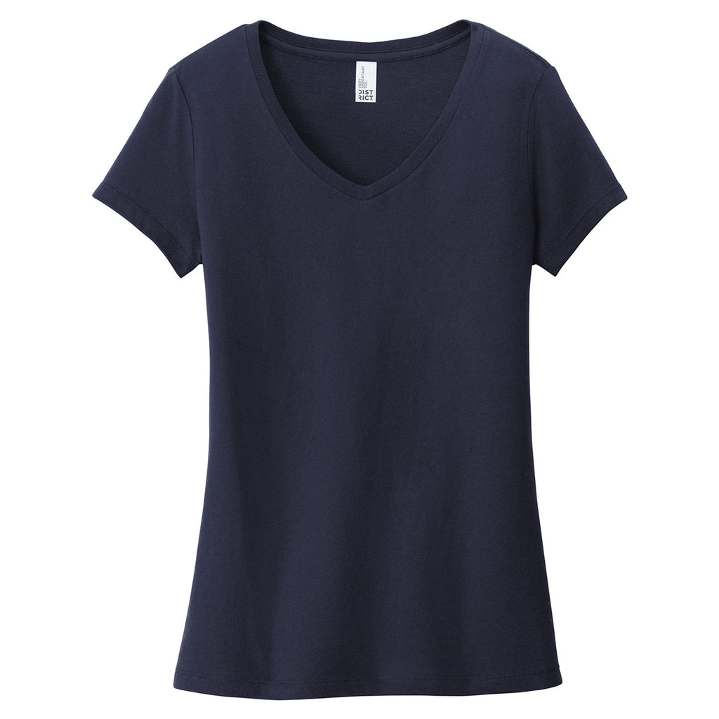 You do not need to wear a tux to feel very important, when you order the decorated District Women's New Navy Very Important Tee V-Neck. The fashionable short sleeve shirt features shoulder to shoulder taping that presents a professional appearance for job candidates attending recruiting events. Attach a custom logo to raise the bar for marketing products and services at industry trade shows. Super soft 100% ring spun combed cotton resists rips and tears to give you go to corporate apparel for years to come. The slightly slimmer body and shorter sleeves make the tee v-neck perfect for active outdoor enthusiasts.Highlights