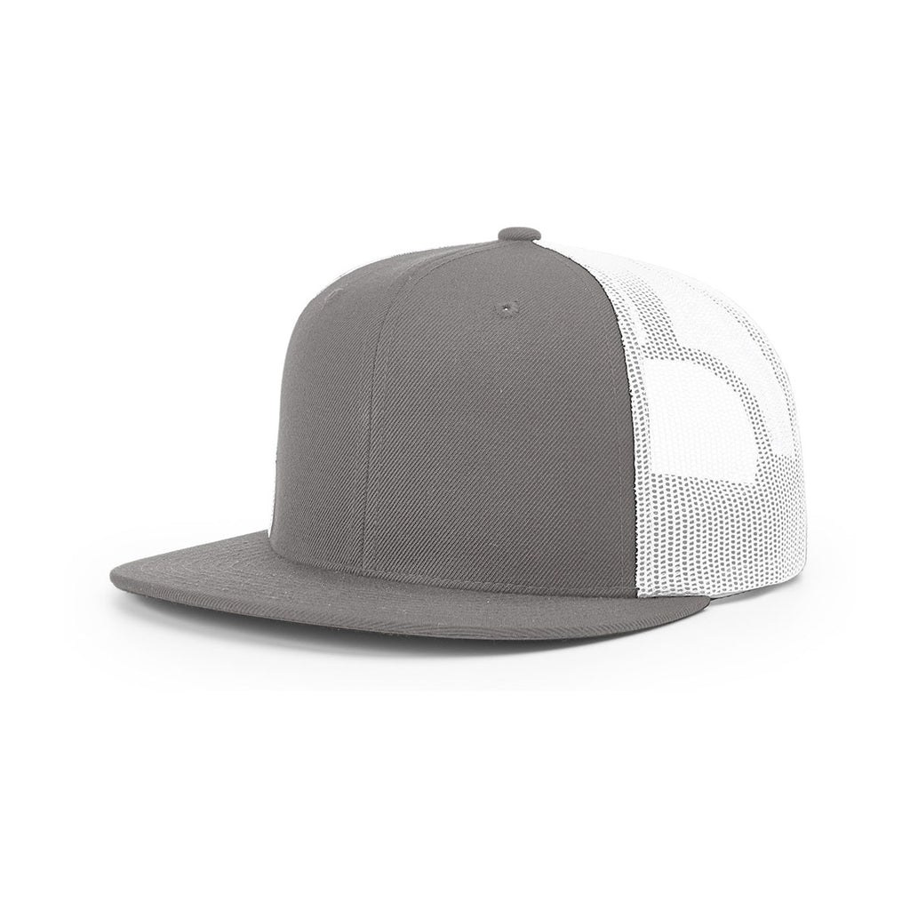Join forces with the custom logoed Richardson Charcoal/White Mesh Back Wool Blend Flatbill Trucker Hat to reach a target audience and increase brand awareness at sporting events and outdoor promotions. It features a wool blend front and mesh back. Custom trucker hats with a logo or team name are a great way to heighten team spirit or corporate swag and bring attention to your brand.The minimum order for this product is 48 pieces.