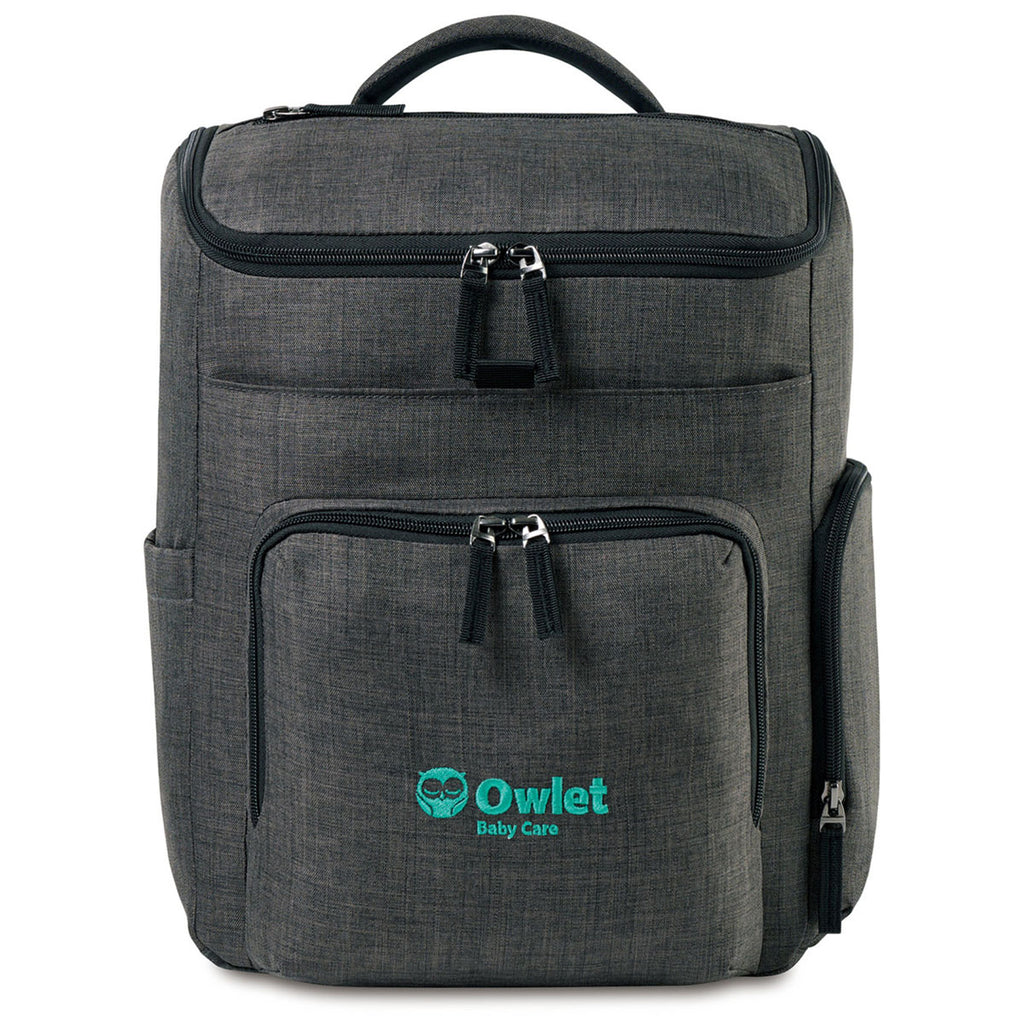 Parents everywhere will appreciate the functionality of the Gemline Charcoal Heather Reagan Diaper Backpack. Along with a large main compartment with a zippered opening, this diaper bag also Includes dual bottle pockets and a large slash pocket made for books or tablets. Add your company's custom logo to create a branded item that is great for expecting parents.