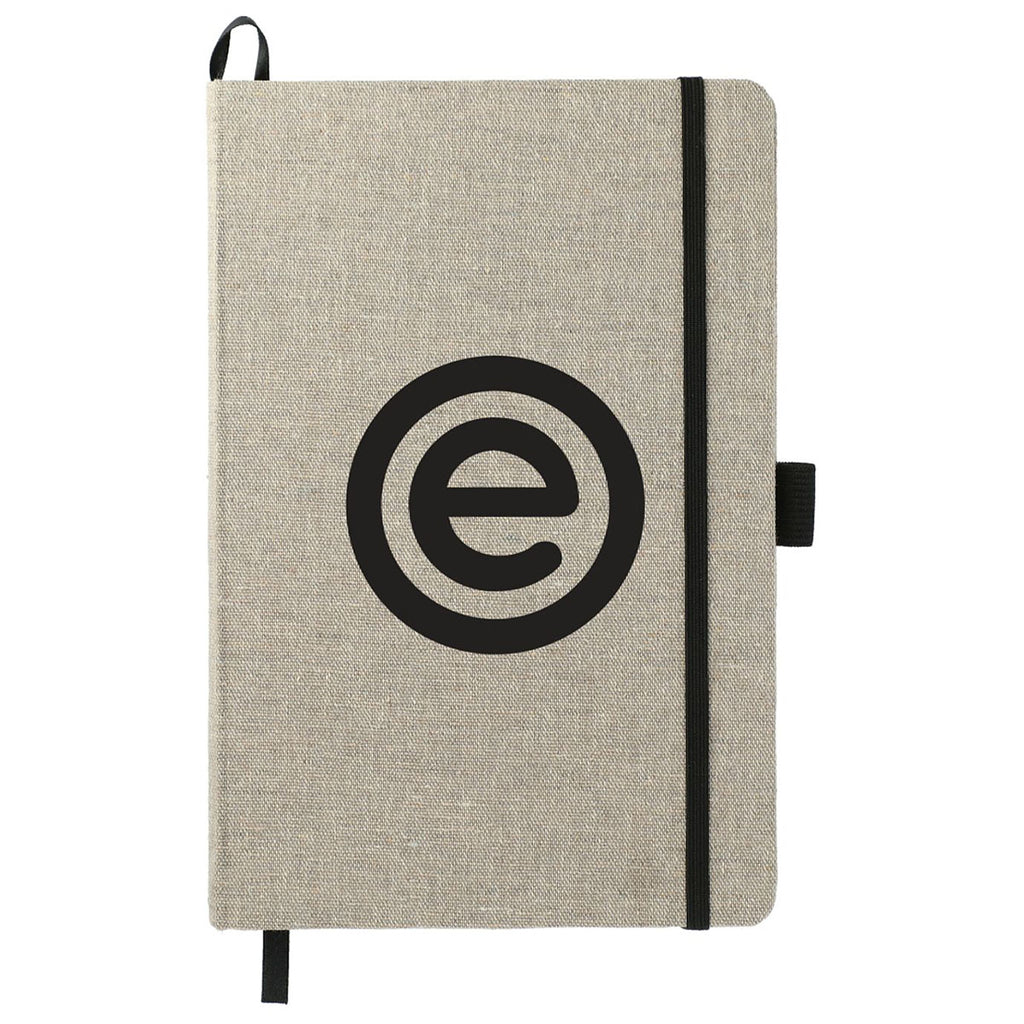 The JournalBooks Natural Recycled Cotton Bound Notebook is perfect for all of your notetaking needs. Features a hard cover made from recycled cotton. Natural color elastic closure, pen loop, and ribbon page marker. It makes a great addition to a new hire kit. Add a custom-printed logo on the front to highlight your company.