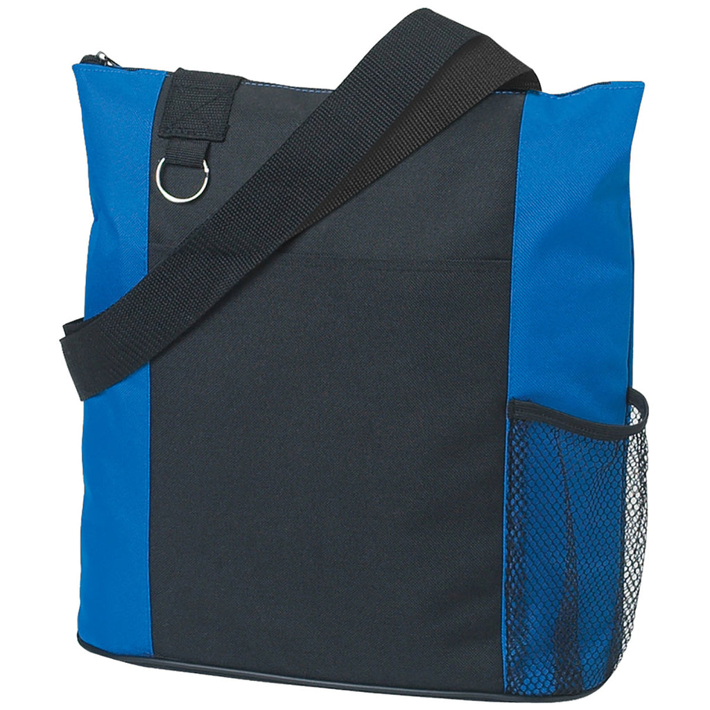 Get organized with the Hit Royal Blue with Black Fun Tote Bag and your choice of custom screen print. Available in a wide range of colors, this tote has a black shoulder handle and a black center panel with colorful sides. The side mesh pocket is great for a water bottle or keys. Provide these for teachers, nurses, travel, or the morning commute.